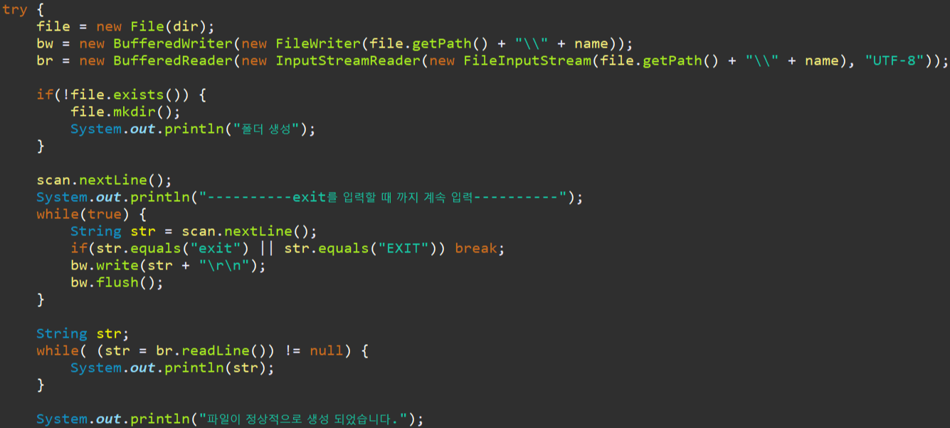 3. exit를 입력받을 때 까지 엔터를 포함해서 실시간으로 파일을 씁니다.