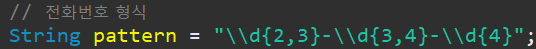위의 사용법을 참고해서 패턴을 만들어 주면 되는데요