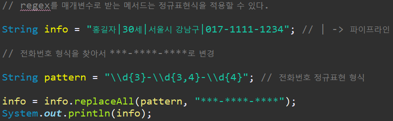 info 가 데이터라고 생각을 했을 때, 데이터에서 전화번호를 읽고, 형식을 변환하는 방법 입니다.