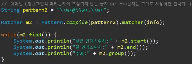 start 는 찾은 인덱스의 1번째 위치를 , end는 찾은 인덱스의 마지막 위치를, group은 추출 하는 겁니다.