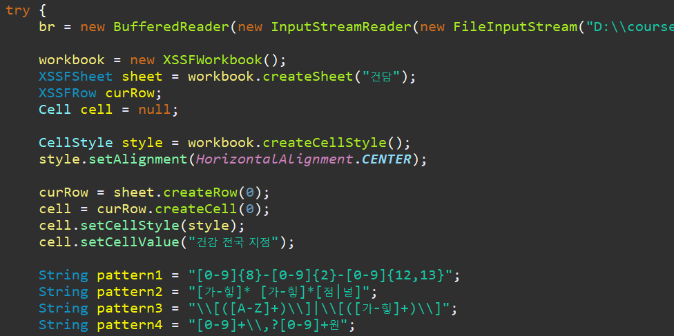 6. 외부 라이브러리(POI)를 사용해서 분석한 패턴을 XLSX엑섹파일로 추출하기