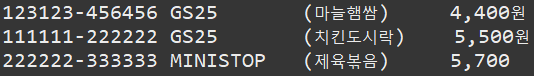 - 정규식 표현법을 사용해서, 상품번호, 편의점명, (도시락명), 가격 으로 분리해서 출력하기