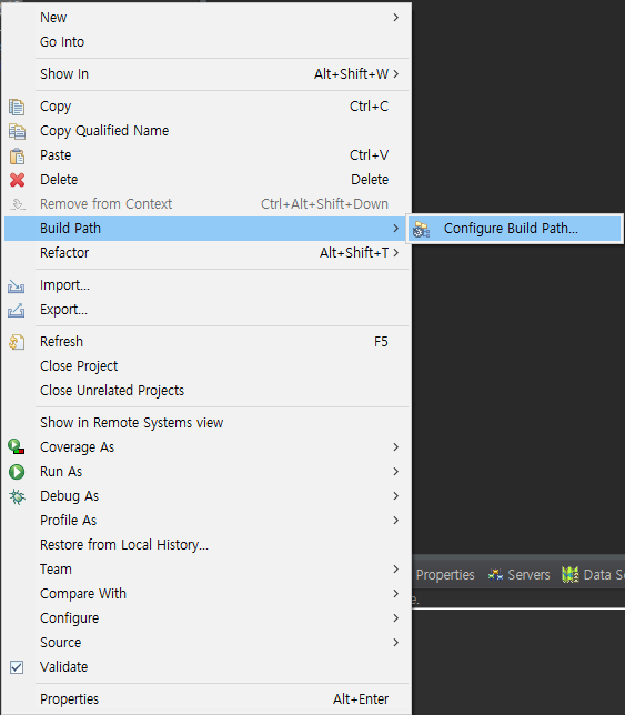 이제 이 Poi를 사용할 프로젝트에 Build Path -> Configure Build Path.... 를 해줍니다