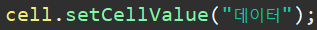 엑셀 시트에서 선택한 행열에 데이터를 넣어 줍니다.