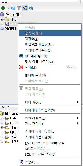 위와 같이 두번 뜨면 성공이 된 겁니다. PDB는 접속 해제를 해주세요