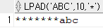 - LPAD(문자열, 최대자리수, 문자) -> 최대자리수 에서, 문자열을 제외한 남는 부분을 왼쪽에서부터 채움