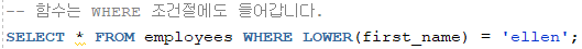 함수는 WHERE 절 에도 넣어줄 수 있습니다.