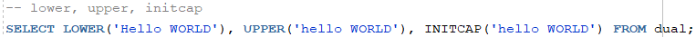 - LOWER ( 소문자로 ) , UPPER ( 대문자로 ) , INITCAP ( 맨 앞글자만 대문자로 )