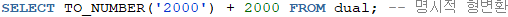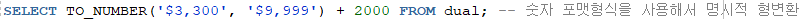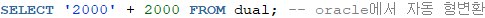 ※문자가 숫자의 형태를 띄고, 연산을 수행한다면 oracle에서 자동 형변환이 이루어짐