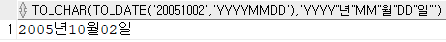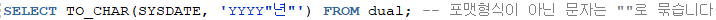 -to_char(날짜, 날짜형식) -> 날짜를 문자로 바꾸기
