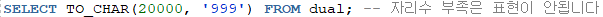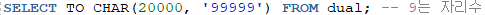 -to_char(숫자, 숫자형식) -> 숫자를 문자로 바꾸기