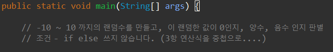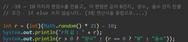 랜덤한 값이 0, 양수, 음수 인지 판별 -> System.out.println( r > 0 ? "양수" : ( r == 0 ? 0 : "음수"))