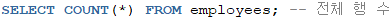 - count(*) over() 그룹화 하지 않아도, 예외적으로 총 행의 수를 붙여서 조회하는 구문.