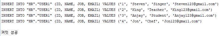 ※오라클을 사용하지 않는다면, 밑에 있는 INSERT INTO를 써서 데이터를 추가해야 합니다.
