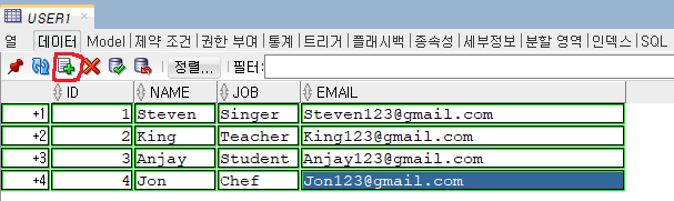 행을 추가해서, 데이터를 입력해 줍시다. (DATA_TYPE에 맞는 값을 넣어주세요)