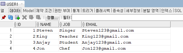 원래는 이렇게 마우스로 테이블을 생성하는게 아니라, DDL을 사용해서 테이블을 만들어 주어야 합니다.