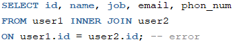 - 속성(column)을 지정해서 조회하고 싶은 경우, 둘다 있는 속성은 테이블명을 알려줘야 합니다