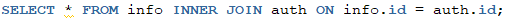 ON절에 온, info_id = auth_id 즉. info에 있는 id와 auth에 있는 id가 같은 행만 조회 하겠다. 라는 뜻입니다.