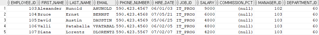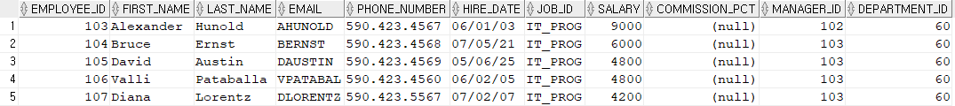 - 직원 아이디가 103번 직원과 같은 job을 가진 직원