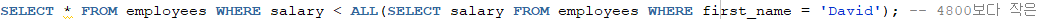다중 행 서브쿼리를 해결 할 수 있는 연산자를 알아 봅시다