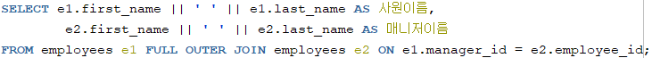 힌트) EMPLOYEES 테이블과 EMPLOYEES 테이블을 조인하세요.