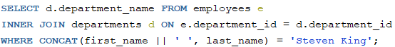 --Steven King의 부서명을 출력하세요.
