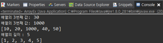 arr6 는 각각 index를 사용해 넣어주었고, arr7은 {}(중괄호) 안에 ,(콤마) 를 구분으로 데이터를 넣어주었습니다.