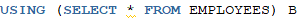USING 에는 서브쿼리를 사용해서, 가져올 데이터들을 작성해주면 됩니다. ( *를 사용해 전부 가져와도 됩니다)