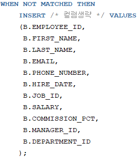 WHEN NOT MATCHED THEN (일치하지 않을 경우 수행할 작업)