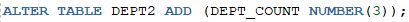 열 추가 -> ALTER TABLE 테이블명 ADD (속성명 유형(길이))