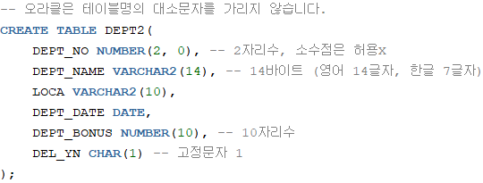 CREATE TABLE 는 테이블을 생성할 때 사용합니다.