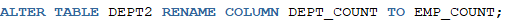 열 이름변경 -> ALTER TABLE 테이블명 RENAME COLUMN 테이블명 TO 변경할 테이블명