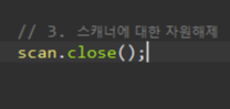 그리고 마지막으로 변수이름.close(); 을 써서 Scanner를 그만 쓴다고 명시 해줘야 합니다.