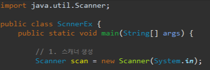 Scanner 변수이름 = new Scanner(System.in);