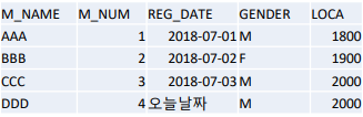-조건) M_NAME 는 가변문자형, 널값을 허용하지 않음
