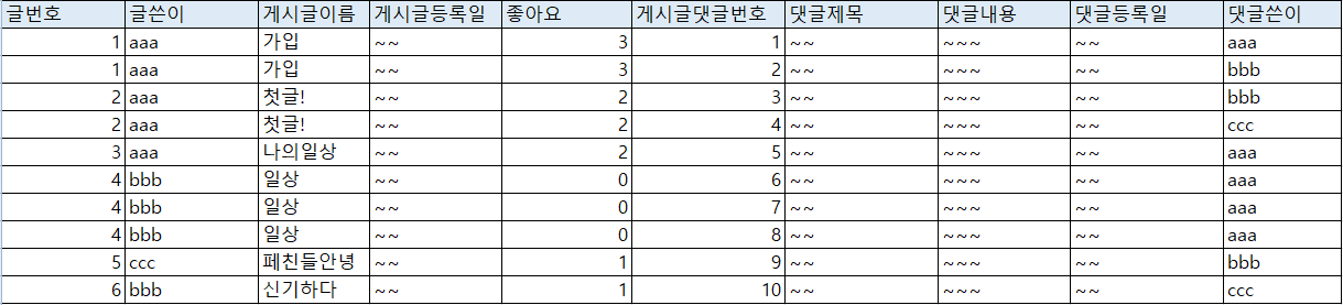 ※ 몇 번째 정규화 인지는 잘 모르겠네요... ( 선생님이 제 3정규화 라고 알려주심 )