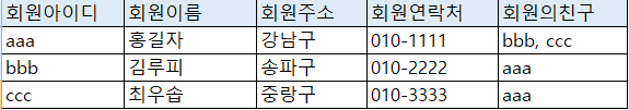 여기서 보면, 회원의 친구가 다중값 속성을 가지고 있어서. 1정규화만 하면 될 것 같습니다.