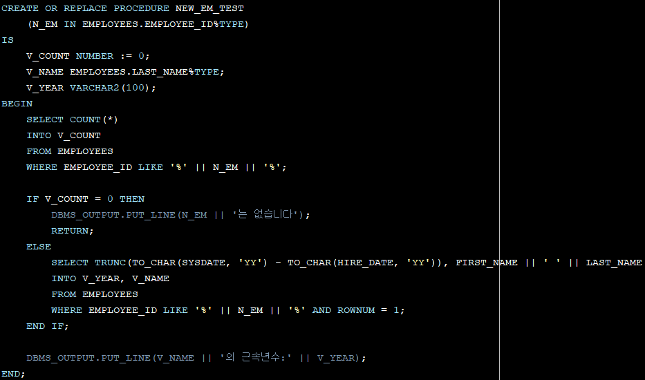 문제. EMPLOYEE_ID를 받아서 EMPLOYEES에 존재하면, 근속년수를 출력