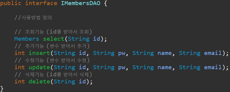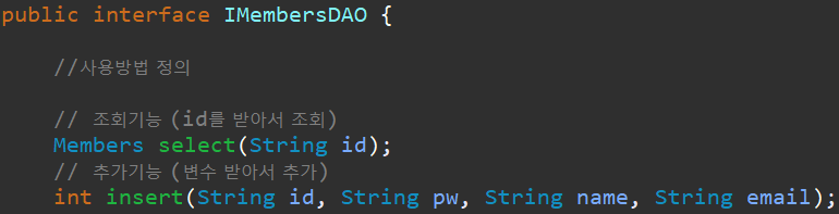 그리고 MembersDAO 에서 구체화를 해주면 됩니다.
