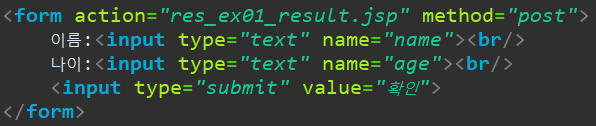 즉 중간에, res_ex01_result.jsp 파일은 <html> 태그가 필요없이, response 처리만 해주면 됩니다.