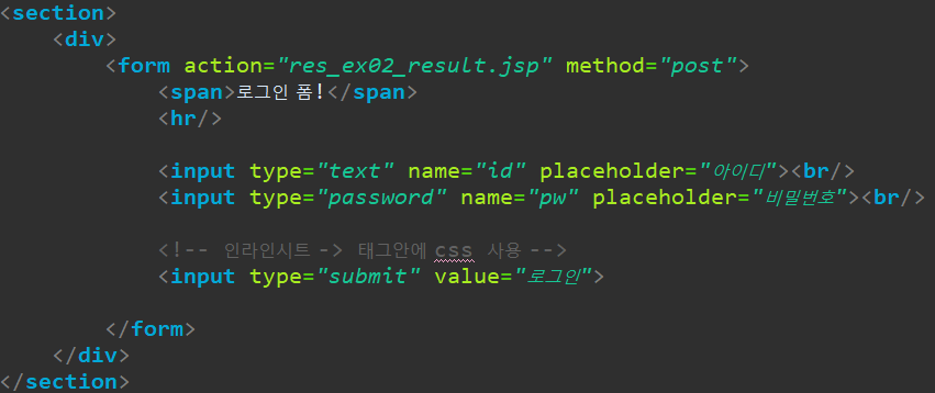 아이디와, 비밀번호를 입력받아서, 로그인을 누르면 아이디와 비밀번호를 비교할 res_ex02_result.jsp 가 필요하겠죠?