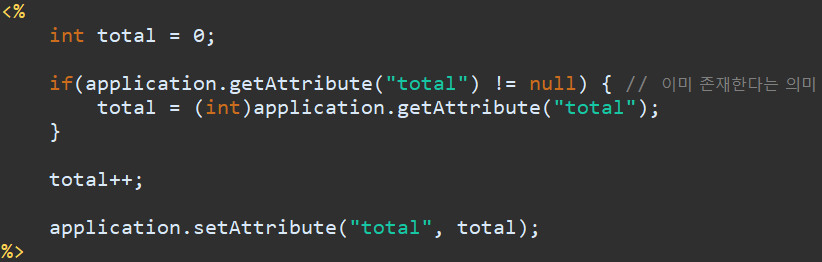 application에 있는 데이터를 사용할 때는 getAttribute를 사용하면 됩니다.