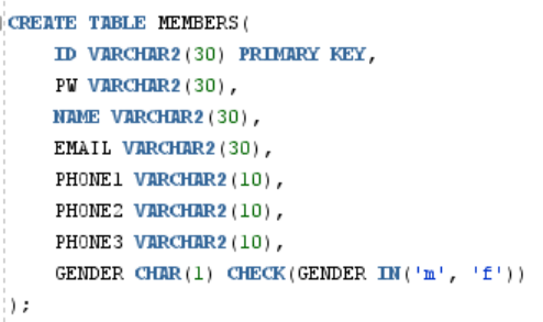 String sql = "insert into members values(?, ?, ?, ?, ?, ?, ?)";