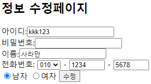 이렇게, 회원정보 수정 페이지를 만드는 것을 해보았습니다.