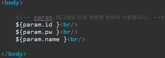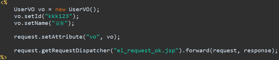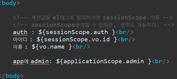 그런데, EL을 사용하면 아래와 같이 스크립트릿을 사용하지 않고 사용할 수 있습니다.
