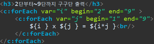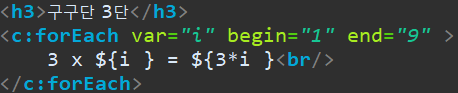 - <c:forEach items="객체명" begin="시작값" end="끝 값" step="증감값" var="변수명">