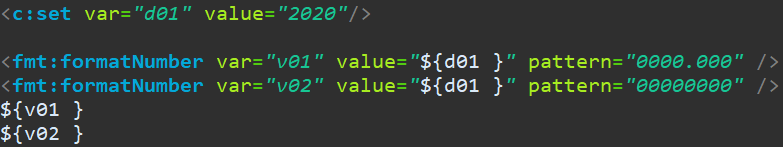 <fmt:formatNumber var="사용힐 변수명" value="값" pattern="형식">