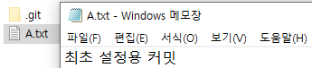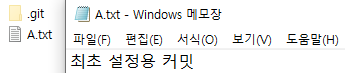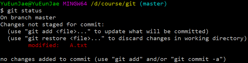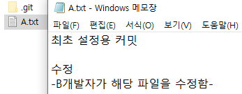 이 상태에서 저는 A.txt 를 수정을 합니다. ( 커밋은 하지 않은 상태 )