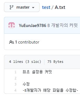 그리고 원격저장소에 내가 아닌 누군가가 A.txt 를 수정합니다.