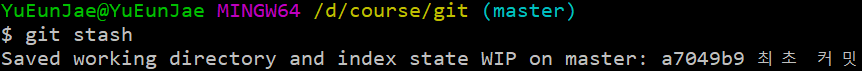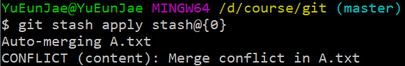 ※ git stash aplly <stash 이름> -> stash에 있는 파일 가져오기